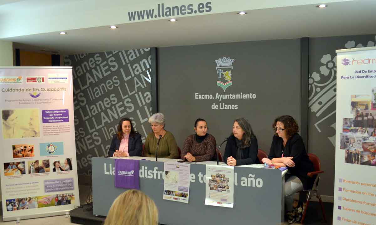 En el Consistorio llanisco tuvo lugar esta mañana el acto de presentación del convenio de colaboración suscrito entre la Federación de Asociaciones de Mujeres Rurales (FADEMUR) y el Ayuntamiento de Llanes, que posibilitará el desarrollo de varias actividades englobadas en dos programas financiados con fondos del IRPF del Principado de Asturias: Cuidando de l@s Cuidador@s y REDMUR (promoción laboral de las mujeres en la zona rural).